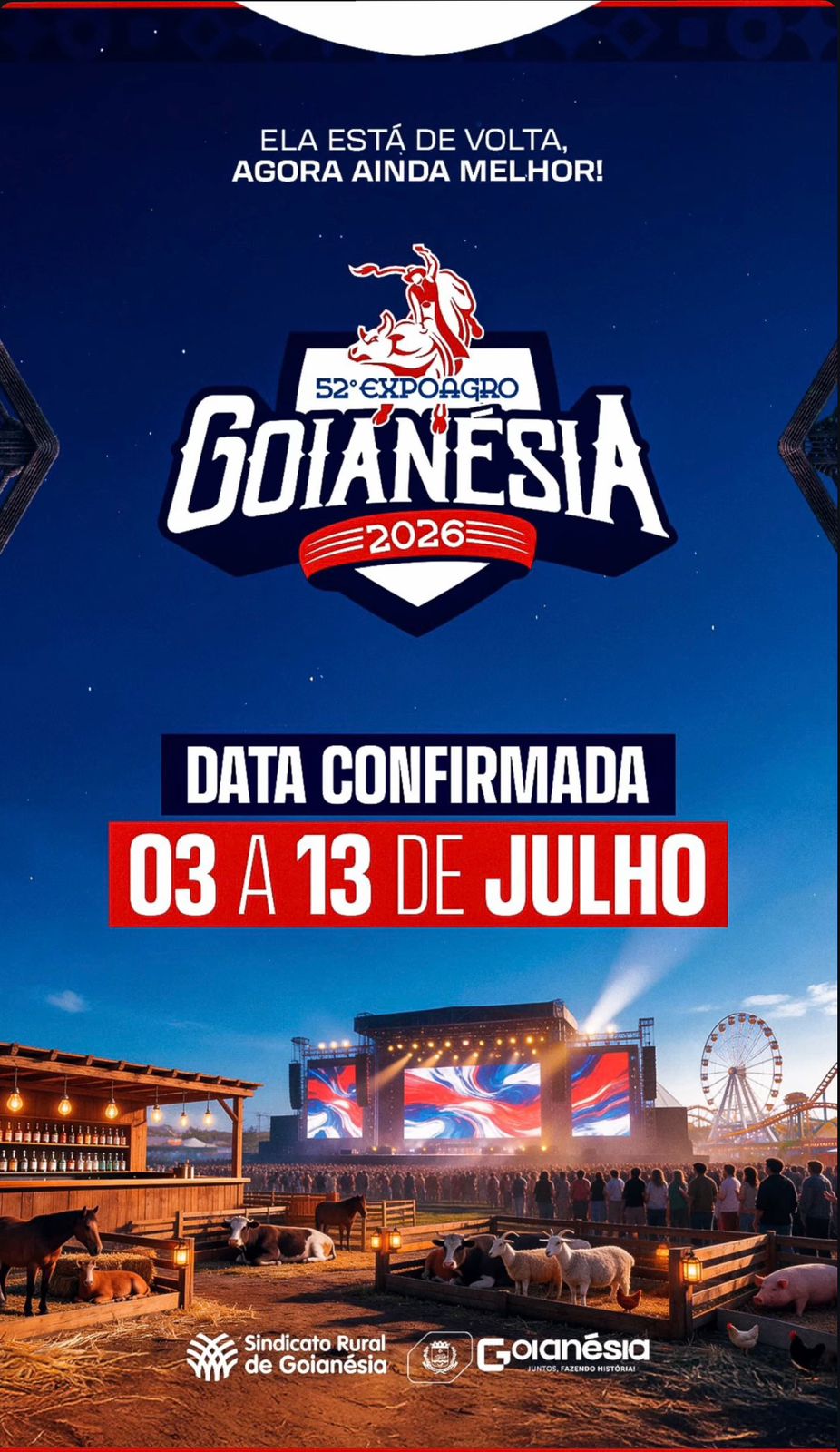 Confirmado 03 a 13 de Julho Vem aí a 52ª ExpoAgro Goianésia 2026