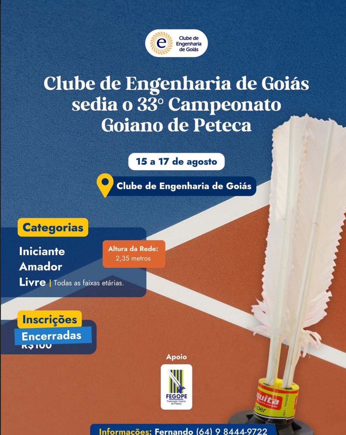 Goiânia se prepara para o 33º Campeonato Goiano de Peteca: porta de acesso ao Campeonato Nacional de 2025
