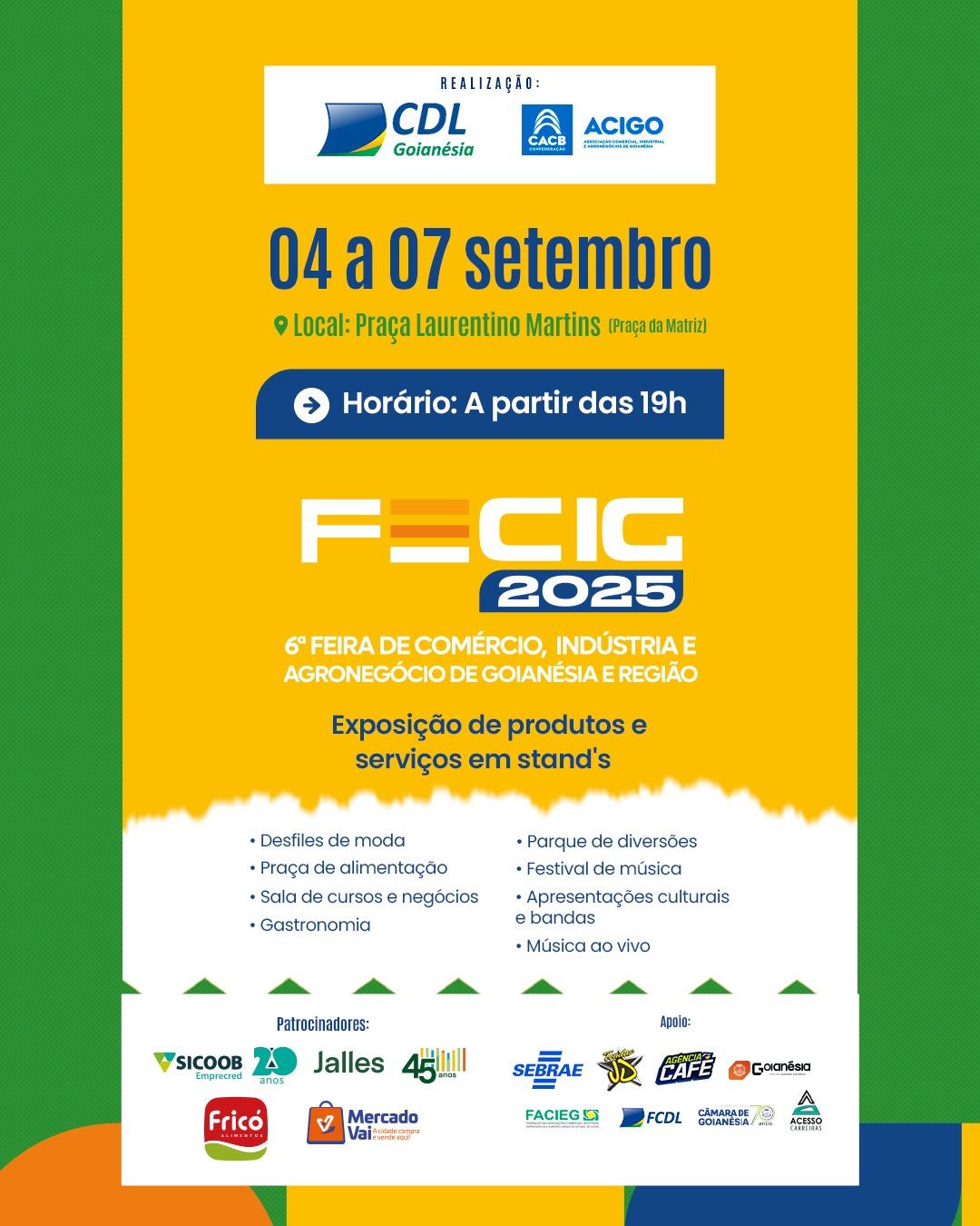 FECIG 2025 acontecerá de 04 a 07 de setembro na Praça Laurentino Martins