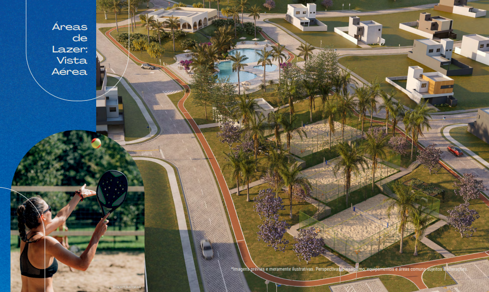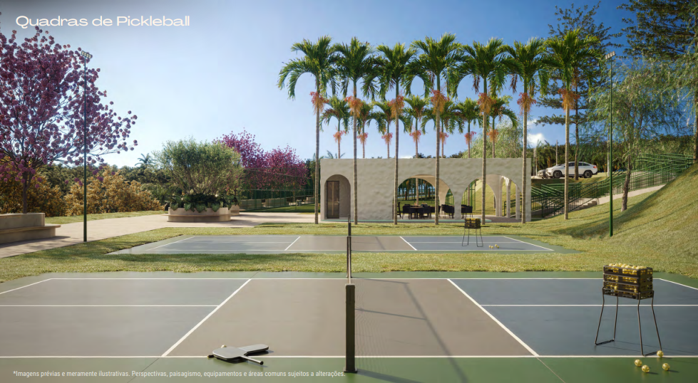 Para o lazer, o projeto também traz em seu projeto diferenciais inéditos. O novo condomínio de casas contará com mais de 20 áreas de lazer e convivência, com destaque para uma inédita quadra de pickleball e uma exclusiva trilha de mountain bike.