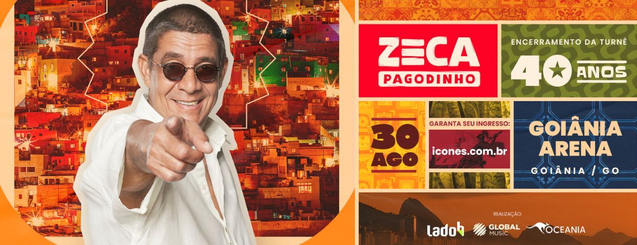 O sambista Zeca Pagodinho apresentará um dos últimos shows de encerramento da sua atual turnê especial de 40 anos de carreira, na noite deste sábado, 30 de Agosto, em um grande palco montado no Goiânia Arena. O evento promete levar o público a uma viagem musical e visual repleta de sucessos que marcaram épocas, além de grandes clássicos que compõem a riqueza do samba. O repertório passará por todas as fases de sua carreira, com canções que vão desde “Quando a Gira Girou, Vai Vadiar, Minha Fé e Não Sou Mais Disso a Caviar, Faixa Amarela, Coração em Desalinho, Deixa a Vida Me Levar e Verdade”. O carioca Zeca marcou a música brasileira e se mostrou um grande defensor da cultura nacional, tendo recebido uma série de prêmios dentro e fora do país pela sua contribuição. Os últimos ingressos estão à venda no site icones.com.br, com opções a partir de R$ 80 (meia entrada solidária e casos previstos por Lei). Mais informações disponíveis nas redes sociais dos organizadores: Oceania Eventos (@oceaniaeventos) e Global Music (@aglobalmusic).